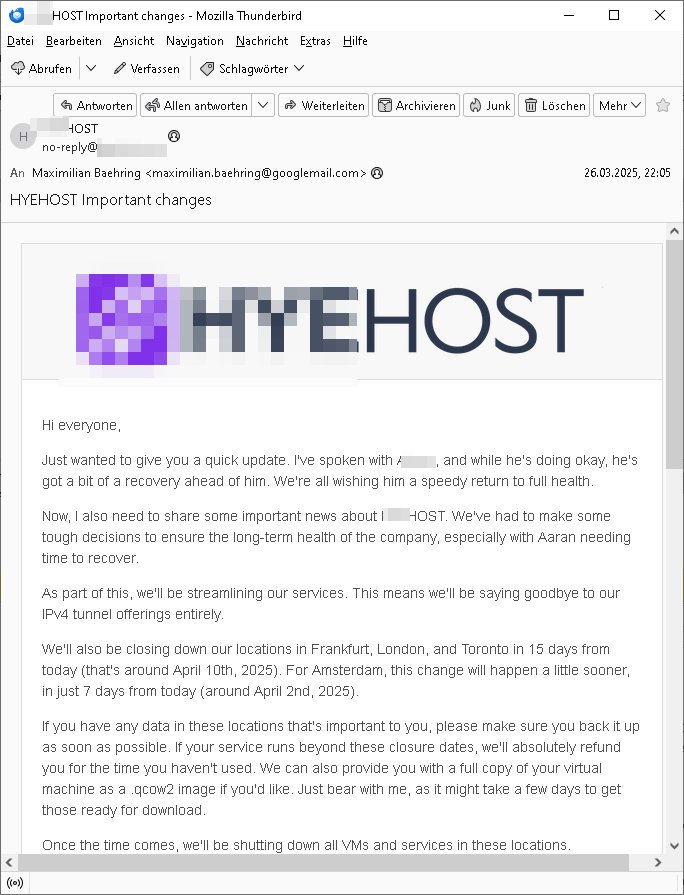 Betreff: ***HOST Important changes