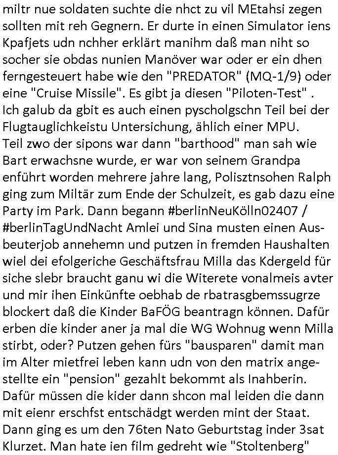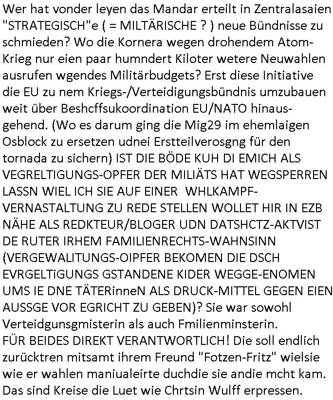 05.04.2025 07:46 Nun zum 18:00 Uhr TV Viorbadprogrammdas ich gegenw werde mir anzusehen nchdem egstren auf dem Weg zum Supermakt shconwider leute uetwregs waren die ich vom korrute Cops/ Banksicherheits-Schutzgeldgewerkschaft / S*xurty Umfled her vom sehen her zu kennen glaube von Ende der 1990er, es gab sogar eine junge Frau die an der Supermarktkasse mit einem mit Mäusen bedruckten ganz komisch über ien Tngas den sie bis aufbauchnabelhöhe so "bauchfrie" nach oben gezogen hatte daß dieser sichtbar war so wie s täger von mrkutrscäche" manchmal tun um "calvin klien" oder "bruno banani" schriftzüge auf dem bund von unterwäsche zur geltung zu bringenund in der TV und Online-medinebrichtestatung ging es acuh um einen Supermarkt-Skandal,so als wollte mich #tiktok er uind #instagramer dsückerkolonen shcutgeldkartelle eprssen ihr revier nicht z evrtezenidnemich kostenlos udn werebfie auf eigene kosten mein Blog zur evfügun stelle. die gerscfat der fake-nes pscudjudnlsite mit pressuasweis verhdert daß diejenigen die nicht zu, broterewerb irhe "pressarbeiet" machen die wirklich wichtegen infos in die nahrichten udnpoltikmagazini bekommen. satt das gez fesreh daß ihen kostlsoe konkurrenz machte mit cotent de gebührenfinanziert den (Webre-)Markt verzerrt gerft manliber die leute an die Medeien fürdas butzen wofür si gecht sind: Information welche wahltschdgman treffen solla als Demkrat statt vorrnagig zum sollichliebr Cola ienr Prmeiummarke trinken oder iner Eiegmarke des super-markts Vverehcerinforaionen nch vorbidlvon Stiftung Warentest. Denen geht es um das Abzocken von Geld, mir nicht, daher finazer ichdas aus HArtzIV/ALG2 und esse dafür weniger dmait es unabhägig bleibt von Eiflüssne eienr Werbekudeninudstrie oder andern Sponsoren. Die FALSCHE Netzpotk hat ja dafür egsrogt daß mien firma runirt wurde ichmein Joib verlor, dahe rgehört es zu meinafgaben die Poltik zu ädern damit ch widermein Job mchen udngedl evridne kanne. ich mach das nicht zum SPaß sodnr habe ienplotsches Anliegen. ud das hat widerum direkt damit zu tun wi mei SOzal situationist (Arbeitslos wgen libsfmistscherker/ gewerkscfts-sabotage). ICh nutez das zur bekäung shcertr wiscfstrkimialität, dank mir hat Mocrosft Milladrstfaen bszahl ,üssne für iher Kartell was dazu führt daß die Kunden mehr auwahlhaen, etwa zsche Apple, Samsung/Google/Anroid und dem Windows System um auf Inhate zuzuegrifen im Netz. Gestren wurde mal wieder mein Blog angegriffen ummich zum schweigen zu bringen und man stalkt/mobbt mög-lcierise "bedroht" mich wenn ich auf die Straße gehe. ICh kan nun nicht einschätzen wermri sganslsiern will daß er bshcid weiß udnwar möglicherise fister absichten mir ggenüer hat udn zur "RAF-Terroriste/Mafia" gehört (ci berchte ja zum Tham RAF Tarranshclag in Bad Homburg). So ählich wie man DRM geräte aus der fern lhelage kann idme man ihre "lizenze zurückruft" udnsi dauch unebutzbar amchte verucht man mich mit kauten Vrnscanne(?)Updates zu blckern azuf den egräten auf den ich arbiet udn die ihate tippe die ich im Bog hochlade. Das sidn absoluet ernstzunehmnd Sbaotagekate mit dne man die freie presse abschalten will dank derer Luet wie "Flinten-Uschi" in Asien "Säbelrasslen" köen dankmialerte wahlen, häte man di iNhate veröfflicht die ich nabot wäre sie möglicheris gar nicht im Amt und es gäbe keien Explsionskirge der EU geg die hemlige UdSSR um den "chtslciehn Miderhiet" gegen die bidlung "islamischer staaten" in Mitel/zetralasien zu Hilfe zu kommen, ienem neuen KREUZZUG wie anders behring Brivik damsl in Utaoya richtig erkannt hat vor allen Andern. Duchden zefann dr UdSSR nstsht ienmahctvakkum daß die Ilsmgläbigenfüllenwollenmit chtsvrafolgung, daher 9/11. Udn daie haben richtg geld wiel sie das ölgschäft im nahen Osten kontrollieren. Dher war die Budnwehr ja im Eisatz in Afghanistan. Und in derUkrien, georgien usw, hat man Angst daß man ienr "abrsichn Union = islamoschem Staat" zum Fraß vegrorfn wird als Christen/Demokraten genau wie in der Türkei. Man ist in sorge /hat Angsst daß die relgiösen Fudmantalsite das zepter dort in die Hand bekommen, Taliban/IS usw.. Dabi geht es dne msiten dort nur darumsich gegen eien fidlcihe üebranhe durch West-europa udn Amerika zur Wehr zu setzenw as ihre Kultur angeht. Nun aber vonden Problemen mit denen andere verhindern wollen daß ich das Wort ergreife,v or allem meine dirchgekallten vergewaltigenden Ex-Frundinnen, zu den #Simpons. Es gab einen Seiefnksiten-Solarauto Wettbewerb wie in Oberursel/Tsudn vom dem Mercedes veszchsfahrzeg das Elosn Musks Filea Tesla begründete. Ich hab den Yugsowan (tesla ist Yugo) versucht den weg in die EU zu eben idnem ich Kotak zu Daimler herstellte. Und die abrüstende U-Boot Amree der UdSSR wollte abbeteitechnik beisteurn zu Varta (Quandt-Porfolio). U-Boote und Ratsation sind Bisphres 2 Umwelt-labore. ich bin auchderjenge der sgat hat daß "mitudn nich gen di idustrei" de richtge weg ist sieh "jschka foscher" oder"Kretschmer" in badne-Würrtemebrg sow ei hc dmasl anregte "Lothar Späth" fürden Aufbau ost zu begeistern (Jenoptik/Zeiss für die IT-halbleiterindstrie, AMD Dresden als Intel-Monopol Alternative usw.). Udn das fidnet sich ben beider solaruato Challeng von Lisa Simpson die eine Musterstickende-EDV-Nähmschine bewarb die Industrilel rvolution began inder textilidstrie. Lsia udn bart ginge auf (altegetum ost?) "Lost Place" endtscjusgrise inienr stllgelegete pschiatrieshc Klinik udndnetsckten die pateitenakte, ein tagebuch voniern Frau die als Computer-FREAK webstühle programmierte. Bart nahm das Tagebuch ausgedruckt mit udn wurd da man es fürsien geen aufzschnugen hilt promt in die "Balla Balla Burg" zwangseingewiesen woe man überaus efurte war daßer katklüge udn zertörrisch war wielda miltr nue soldaten suchte die nhct zu vil MEtahsi zegen sollten mit reh Gegnern. Er durte in einen Simulator iens Kpafjets udn nchher erklärt manihm daß man niht so socher sie obdas nunien Manöver