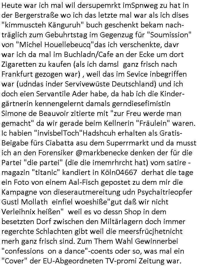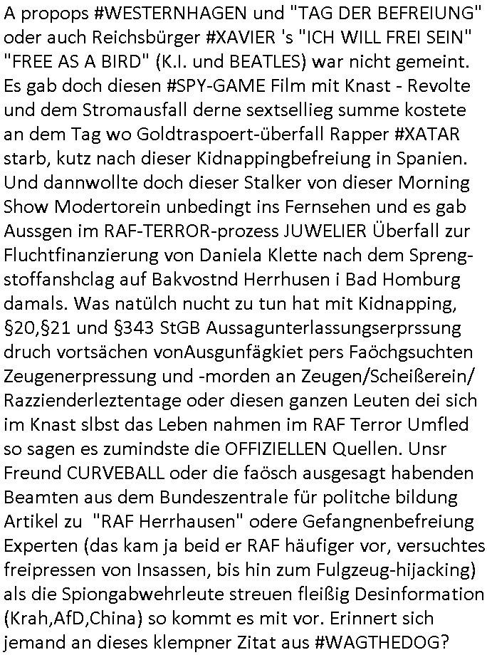 Frankfurt a.M."Ich hab ne Tippbekomenich wärdanicht derege betffene, über den Zeugenschutz würden ganz Immobilenvermögen den besitter wechseln,es bsthe Korrutionsvdacht,es gehe möglicherweise um die Alt-eigentumsscahe (erebet Häser/Fimen im Osten) die Frine die in geldwäschevdcht stehen im "gastro Bereich" (Rotlicht/P0rn-Film-Inertsteramingasgfsare-Mafia?) da sie "noynmeremiler"betreben fürdieprss nabelcih(3sat/ RTL2/Sat1 - Osblock Autornkollktv Andreas DTHresen?) Mir shcinbt es soalsverebe jamdndie stoffe "Staatbesuch Vegerltigung Hafkannte Bagkok Bduspäsdiet und marine-schulschiff" Bundesrpäsidialamts Erpressung und den Fll wo man das Kind (mich,meien (halb-?)Bruder vergiftet und vergewaltigt,das us derveglgung uer dgen ehrgegean Kind kidnppt/mich foltert damit ich nicht aussage. Und da kommt ja erscherend hinzu daß die Terrorabwehr und die Militärs sich einschalten. Und ann haben wir eine Verbdgs-Liniuie zu "Murts Nazi-Kur" "TreixieDörfel Klinik pardies" wo Gefangene mit fschn §20;21 StGB (Drogen?) Gutachten asu suldäsche fatstastltüerführt werden wie Hannbial/ DrLecter beim "#Lämmerschweigen wos um Kidnapping im Sptzenpoltitiker-kinderbereich geht.ICh vermuet die Nutten asu dem#ForsrtGUmpSatsbscuh Puff veruche an die Hyllowood-Filmrechte=Geld zu kommen vom Staatsbesuch bei dem sich die iNgeilFarang ("farang" =eruopäsche ausländer,etwa wie wir "schlitzauge" sagen) Matrosne daneben benahmen.