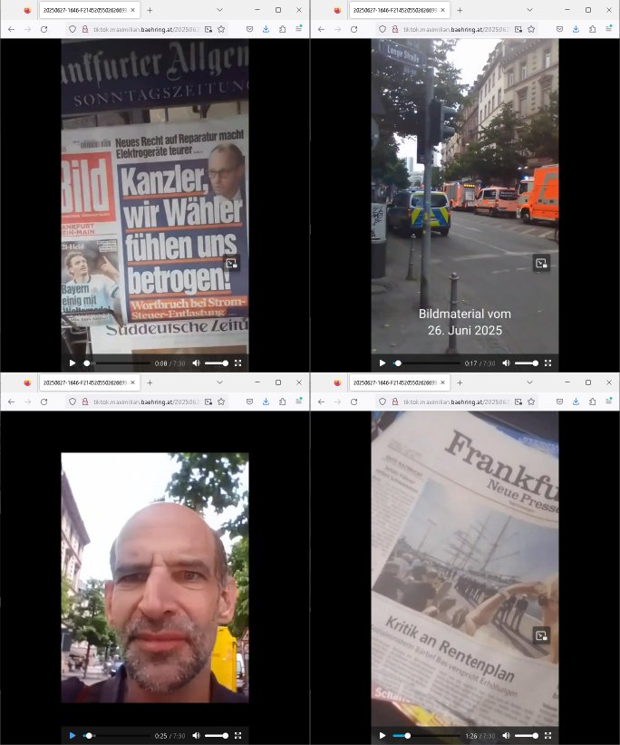 27.06.2025 16:14 http://tiktok.maximilian.baehring.at/20250627-1646-F2145205502626699.mp4 [0] "202506271614-0-1.jpg" [1] "202506271614-0-2.jpg" [2] "202506271614-0-3.jpg" [3] "202506271614-0-4.jpg" [4] "202506271614-0-5.jpg" [5] "202506271614-0-6.jpg" [6] "202506271614-0-7.jpg" [7] "202506271614-0-8.jpg" [8] "202506271614-0-9.jpg" |