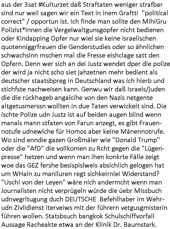 07.07.2025 07:00 Am Samstag abend gab es eine hochinteressante ZDFInfo Doku wo es um Gräuelaten der Polen an der deutschen Minder-heit ging die zum Ausbruchc des zwoten weltkriegs führte nur mal so am Rande weil ich mich mal mit der Frage von (un-)"bestätigten Abschüssen" von Flugzeugen und von "be-stätigten Toten" beschäftgt habe was folglich bdezet daß es auch "un-bestätigte Tote" sind (siehe Prof. Boerne #Tatort Limbus) gestren im "Claire-Schlamm, wobei Cläre mit A-umlaut gschiebn ist" Video. Jedfalls hiße esd a daß @SteinbachErika1 recht hatte mit der behauptung Polen habe zurest mobil gemacht und Deutschland darauf reagiert. WIkipdei ist voler fherl shcibe ja ahc die Frakfurter Allgemeine Sonntaszetung. Ich fidne die bduwehr sollte mal ein paar Kriegs-Schiffe an dei plnsiche Ostessgreze vrlegen umdiese zu shcützen. Die staten ja iege Gerzkotollen gegen angliche schleuser die mschen von Dsuchlan dnch Polens hclsuensolln, ist das denn so ien hochlohnland inzwischen oder gibt es da mahr soszallsitugen als hier oder im BRexit gebiete für Asylsuchende asu Drittstaaten (Die Lampdusa Libyer dene BErluscon EU Abristvias für dei erhife ausstelken wollte?) und noch was: a poprs cklären: wenn der ostblock kriegs-erklärugen vsden will sollete r sichd abi besser nicht auf plsnche BIGFAx etchnik valssen dannkomen die nämlich nicht an (hete rst gstohlen ...) und es gibt ein neues "stumbling ...to pearl harbour without warning (they offer [IRDA] infrarde instead of SUN (microsystems)". Ich glaube irh deppenhabt nicht begriffenwas die polen da machen. Sie rgelen den zugang zu den Ostgebieten/ Ostpreussen ab woebi sie sagen es obliege ihrer Justiz und ihren Bhördn zu uscheiden wer "Schleuser" sie, etwa jemand der als ein Makler oder privater Jobvermittler Heimatvertrieeben au dsuchland in die osgebiete welche die fmilen jahhrdetalng besidelt haben zurückholt. De facto küdgt Polenals die Abkomen zur oder-Neiß Linie auf nchdem sie jahrnlang amssivst miltrsichafgarüste haben. Udn wenn der esrte Hismtvereben Ostgebietsstämmige drasgsliert wird duch die polize dannwird dei Bduwehr mal erklären müssen anhadn von Fotos was "Polen offen" im deutschen Sprachgebrauch heißt. EU subvsnbione udn risfeiheit ach wetsuopa gibst nur gegen Siedlungsfreihiet und Minderheitenschutz für Histavreibene (Remigration). ICh wieß ncht ob alle wiriklich mitbkeomen habn daß auch ander Ostblock Länder gerade asu genau diesem Grunde EU Mittel gesperrt bekommen/nicht abrufen. Und jetzt das Misstrauensvotum gegen von Der Leyhen. Wen ich en großer fan ienm ebstimmet Sontagskimi bin so ist es der Versuch im #Polizeiruf110 FRANKFURT ODER die porbelamtik der EU-binnengrnzen aufzuzeigen, etwa Prostituirete und Drogen, Schmuggel und Schleuserei. Wenn es karcht und das "scripted-reality Fernsehen" das auafgrit so wird es als scheinbar harmloser Mordfall an der Oder-Neiße-Linie beginnen. Presse-Soldat mit Fake Erkennunsgmarke/wikipdea gsechistvsisonums oder so. https://www.tvinfo.de/fernsehprogramm/2151283391-der-zweite-weltkrieg https://www.tvinfo.de/fernsehprogramm/2151283393-der-zweite-weltkrieg https://www.tvinfo.de/fernsehprogramm/2151283395-der-zweite-weltkrieg https://www.rbb24.de/politik/beitrag/2025/07/polen-grenzkontrollen-beginn-staus-a12.html https://www.tagesschau.de/ausland/europa/brandbrief-eu-ungarn-100.html https://de.quora.com/Was-genau-ist-eine-best%C3%A4tigte-und-eine-unbest%C3%A4tigte-T%C3%B6tung-Wie-werden-Scharfsch%C3%BCtzent%C3%B6tungen-best%C3%A4tigt-Brauchst-du-eine-Leiche-als-Beweis-Muss-ein-anderer-Soldat-Zeuge-des-Mordes-werden https://www.tagesschau.de/ausland/europa/ukraine-russland-austausch-100.html (1.200 Leichen: Tiere oder Menschen?) https://www.faz.net/aktuell/wirtschaft/wikipedia-ist-nicht-mehr-aktuell-und-hat-viele-fehler-110575350.html https://de.wikipedia.org/wiki/Polizeiruf_110_(%C5%9Awiecko) https://de.wikipedia.org/wiki/Tatort:_Limbus [0] "202507070700-0-1.jpg" [1] "202507070700-0-2.jpg" [2] "202507070700-0-3.jpg" [3] "202507070700-0-4.jpg" [4] "202507070700-0-5.jpg" |
