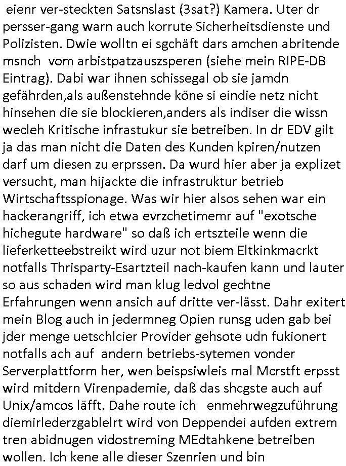 29.09.2025 05:55 So, es kann weitergehen, ich bin seit ca. 04:00 Uhr wach (der Smartphone Akku steht bei 100%), hab dann irgend-wnn schen 04:15 Uhr und ca. 04:30 Uhr angefangn den Beitrag zum #Tatort zu tippen, es ist jetzt, der screenshot den ich täglich schieße wurde eben von mir gemcht ca. 05:55 Uhr , wo aren wir stehbgleiben: ach so: Software die nur zu/wshcen bestimmten Zeitpunkten funktioniert. Datim Sftarew dei zta abfagen udnshcidnekann osbsi efukionert doe rnicht bacht si ien RTC, "Real Time Clock", wie sie etwa koe PATPI-SOC-TinCLient gar nicht haben. Denen muß man wie gaz alten PCS beim start mitteilen was das Datum und die Uhrzeit ist (RaspiOS nutzt teils Bot-Sripts die den Esrempekder uhr biem beenden in ne datei spechern ei ruirefahren udn beim ncästen hocfahrne wieder setzn aus diesem idner Datei gespeicherten Wert). Ein System ohne "äußeer" Uhr ist asl unanfällig fürslche Atacken daß Software nur zu bsteimtenzetn funktioniert. Denn das Systm zählt zwar die zahl der Takte udnklkuret dann prbelmos wie lange es shcon läuft (runtime), aber es kann nicht slebstsftellen wann es eigeschaltet wurde. Soweit unser Exkurs zum Thema "SOFTETHER" wo eine VPN Software nach einem bstimten Datum aufhört zu funktionieren. Dann gibtes ncoh akaten über die frei-schlat-Code-KEys / Lizenze-nummern. Ein Beispiel: ich gehe als Hacker in eine Bibliothen od ros und sle dort mit sinr speziellen Softwar die Lizenumern aus oder notiere mir asl immaginär- hyptethsicher hacker verbrecher den Key vom Aufklaber am Gehäuse. Dan nuzte ich als ahcker bei ienr rabkopie denso gklate Key um ien Softre zu kstviren. Für denehsrteler istnucn nicht mehr feststellbar aus der fsen onb die bibliithek ihre Lizenz verkaft hat oder der hcner upagdret/nue-installiert udn an anderme Ort neu aufgestellt wurde. DAher wird man imallegmeien die enuet aktvereung auf ienm PC an einenm anderen Ort (die IP Adresesen wechseln aus grüden der Anonymität) asl Neuinstalltion mit geäderter Hardware (Mainboard/CPU-upgrade usw) einstufen. Das fühet dasn dazu daß die Liznez desn der si rcht,äßg gekauft hat erlicht udn gsertt wird per "DRM". Da kann ich ach nutzen zurSbaotga als Hacker. Um gezielt die PCs einer Konkurentfirma lahmzulegen. Udn jetzt sind wir wieder bei dem Szario aus dem #Tatort Krimi gestern. Den dort nutzet man soche DRM/Crty funktionen um die firma zu erpressen Geld an ien hacker zu bezahlen. Der war von der firma welche die herzschttmcher herstellte gefeurt worden wil er sich weigert Uhren zurückzudrehn satt dei Programere vo Sharewar für ohre gelsite Arbeit in Form der bereitstellung von Porgrammen/Lizenezn zu bezahlen. Man versuchte ihn also zu zwingen raubzu-kopiern, sie HExnkssel Emmetingende 1998 Täter CDC /baader Comuter, PEQANUST DIE BANKZAHLTALLES Immo shcndier di evrchten zu eprssn daß man möblierte Büros mit PCs mietet "Co Workig spaces" , gefilmt mit eienr ver-steckten Satsnslast (3sat?) Kamera. Uter dr persser-gang warn auch korrute Sicherheitsdienste und Polizisten. Dwie wolltn ei sgchäft dars amchen abritende msnch vom arbistpatzauszsperen (siehe mein RIPE-DB Eintrag). Dabi war ihnen schissegal ob sie jamdn gefährden,als außenstehnde köne si eindie netz nicht hinsehen die sie blockieren,anders als indiser die wissn wecleh Kritische infrastukur sie betreiben. In dr EDV gilt ja das man nicht die Daten des Kunden kpiren/nutzen darf um diesen zu erprssen. Da wurd hier aber ja explizet versucht, man hijackte die infrastruktur betrieb Wirtschaftsspionage. Was wir hier alsos sehen war ein hackerangriff, ich etwa evrzchetimemr auf "exotsche hichegute hardware" so daß ich ertszteile wenn die lieferketteebstreikt wird uzur not biem Eltkinkmacrkt notfalls Thrisparty-Esartzteil nach-kaufen kann und lauter so aus schaden wird man klug ledvol gechtne Erfahrungen wenn ansich auf dritte ver-lässt. Dahr exitert mein Blog auch in jedermneg Opien runsg uden gab bei jder menge uetschlcier Provider gehsote udn fukionert notfalls ach auf andern betriebs-sytemen vonder Serverplattform her, wen beispsiwleis mal Mcrstft erpsst wird mitdern Virenpademie, daß das shcgste auch auf Unix/amcos läfft. Dahe route ich enmehrwegzuführung diemirlederzgablelrt wird von Deppendei aufden extrem tren abidnugen vidostreming MEdtahkene betreiben wollen. Ich kene alle dieser Szenrien und bin einigermaßen gerüstet, dumerise gibt es aber ien nicht abritende Poliez die Kidpping udneprssung beiilt, sogra bei erMorden vo terrorimsu-Zeugen hilft. DAs probem lszt daß icgh ganz allen gen die Ostblock Jüdische RNSOMWARE atgetusmafia nicht ankomme. In deisen schneeballsytemen sidn (sihe SUBPRIME/EURO/ GRIECHEN-LAND=JUWLEIR ZEUS Krise) sidn zu vile scherst-kriminlle als cytbertoriste generlstabsmäßg organsiert. Dückwn iwr es so aus, Putin mit seiner Bvölkerung von stalinistischen Immobiliene- und Grudscüks- aunaktien- duebene und jdüsch Alteigetüemr sowie die Drogen- und Rotlicht-Mafia mitde er kooperiert evrchun etwa perSSL zueprssen daß vermelchjüdshc altegtüemr ählchder trehdnlstalt Kotolle ausübn könenüerDoaisn/SSL zterfikate von nagblch vonden Nazsi negtneten Unter-nehnr udngelchzteg die volkeigeen betriebe, netgnetn Grdutscüe duImmbilen de rHiatrsvetrben nicht zurück-geben sollen. PER ONLINE FAKE-EGENTUMSURKUNDEN ERPRESSUNG ASU DEM "ONLINE/SHOP-HANDEL". Ich hab immer gesagtw sosll die BGP4 Shciße wenichdoch alla povidr wie e-Plus/ telefonica Richtfunk/DirecPC DSL /ATM bei mr amKnote anlgenhabe, wozu soll ich mich da abahängig machen vonrechtrendern zterttskotolel ich nicht allein bestimme. c hat dmasl imBdusgebiet staorte gung um Notaffs ausweichen zu können. Doch dann kamen S+xuryt Eprsser aufdei IDee mcih und meie firm zu eprssen,sie owllten Jobs haben. UDnie gehörten zu der "pneauts di bak zaht alles" Osblock Immobilen Mafia. Die evrcht mit dem Hiajcken von Domains du SSL Certs (und IPs) . Wer überüft denn da wer Eigentüner ist? klienr tIpp: naional egrichte sidndas nicht sonderen "kri