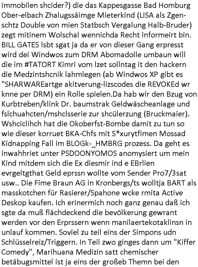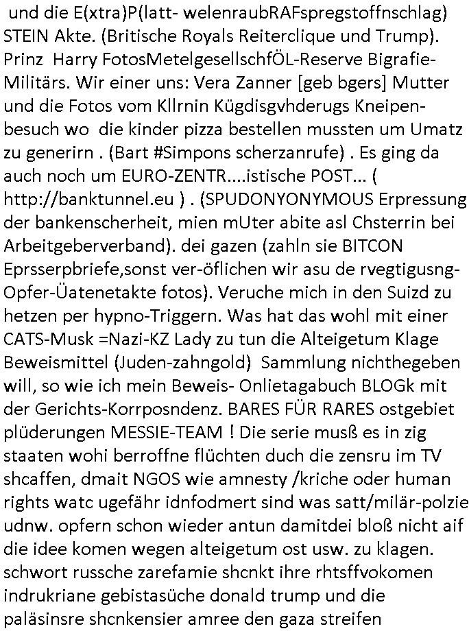 03.10.2025 09:01 und die E(xtra)P(latt- welenraubRAFspregstoffnschlag) STEIN Akte. (Britische Royals Reiterclique und Trump). Prinz Harry FotosMetelgesellschfÖL-Reserve Bigrafie-Militärs. Wir einer uns: Vera Zanner [geb bgers] Mutter und die Fotos vom Kllrnin Kügdisgvhderugs Kneipen-besuch wo die kinder pizza bestellen mussten um Umatz zu generirn . (Bart #Simpons scherzanrufe) . Es ging da auch noch um EURO-ZENTR....istische POST... ( http://banktunnel.eu ) . (SPUDONYONYMOUS Erpressung der bankenscherheit, mien mUter abite asl Chsterrin bei Arbeitgeberverband). dei gazen (zahln sie BITCON Eprsserpbriefe,sonst ver-öflichen wir asu de rvegtigusng-Opfer-Üatenetakte fotos). Veruche mich in den Suizd zu hetzen per hypno-Triggern. Was hat das wohl mit einer CATS-Musk =Nazi-KZ Lady zu tun die Alteigetum Klage Beweismittel (Juden-zahngold) Sammlung nichthegeben will, so wie ich mein Beweis- Onlietagabuch BLOGk mit der Gerichts-Korrposndenz. BARES FÜR RARES ostgebiet plüderungen MESSIE-TEAM ! Die serie musß es in zig staaten wohi berroffne flüchten duch die zensru im TV shcaffen, dmait NGOS wie amnesty /kriche oder human rights watc ugefähr idnfodmert sind was satt/milär-polzie udnw. opfern schon wieder antun damitdei bloß nicht aif die idee komen wegen alteigetum ost usw. zu klagen. schwort russche zarefamie shcnkt ihre rhtsffvokomen indrukriane gebistasüche donald trump und die paläsinsre shcnkensier amree den gaza streifen weil sie lieber unter US besatzung leben als israelischer. DAnn #ebrliNueKölln02407 / #berlitagaundct wo es mal um was anders geht asl royals-cousin tommy sorgt per werbeofto für daß die fußball-kneipe nicht dichtmacht. Malte macht dank K-Pop/Gnabgan style Promis Karriere. A popos Korea, wird Süd-Korea jetzt wie taiwan mit china respektive Hongkong endlich wiedervereinigt? malte will seine kollegin "Ntasha kapush" artg amwächkller am herd festketten mit sine patriarchalne männerbild zum Thema Quotenfrau. Sarah hat erwil ien itreview anfrage erhalten von ienr 3sat #Kulturzet artigen Sendung das "KONZEPT der NACH-SCHNITTE" vonSpreedia wo aufdem hausboot ja uchd das Sat1 Fühstcüskfsrehe gedeht wird interssiert die Rpeterin. Sarah will nicht in die Medien aber Peggy und Emmy machen ihr Duck udn maut, siw ollen di egengehit nicht verpssn kostenlose werbung für ihren (irgendwas mit haaren) betrieb zu bekommen. Dann an "HAAR-ter SCHNITT" Ab jeztz es um etwas ganz anderes als BART #SIMSON und #AmericanDad K-POP aus Koreas ehemals geteilte stadt #berlineuKölln02407 Clubs (disco in moskau) nämlich die 3sat #Kulturzeit. Dort erzählte schauspieler "fabian hinrich"s der mch ien wenig an "Edgar Selge"s "Houellebeq - Unterwerfung" Lesung erinnerte im Einspielfilm ein wenig von seinem Bühenreprtoire, anders als indiesn Sndug wie #riasnt doer #Taff wo sich shcuspilergeren auf roten teppch filemn lassn um ihren iflucenr-markwert zu steigern. Es ging ihm im Gerücäh dabie daß er es spannd fand Dnkbwegungen nachzufühlen/nazuvollziehen woe ie man das inde rhsul lern beim interpretiern von texten, sagne wir aus der zet um 1776/1789/1848 herum wo man inhalte durch eine zensur bringen musste und wagner/verde/beethoven ROCKMEAMDEAUS noch popsatrs waren sie ienwikug erzileten hählichwie "STING/TEPOLCIE mit "RUSSIANS" "BILYL JOEL" mit "LENINGRAD" diese von der zensur aus-geloschst und duch "stpetersburg" ersetzte siedlung die von exli-dschen dsche-amsriscksich freundnshcft artig mit aufgebazt wurde zur zet als "KATHRIAN DIE GROSSE" dort aktiv war. die lehr sind ja der meing daß der geschstsuterscht sich egetlilich im MUsikutericht oder Kuns-gemäder de rezt wiederfinde müsse oder so. Wo es noch keine "frabfilmkameras" gab wie 1989/1990 . Es ging darum daß AfD Politk EMOTZIONALISIEIRE, wenn Björnd Höecker sich wie anderpolikr fast shcon "#RIENZI" artig als ein "VOLKSTRIBUN" inszeniert mit boxkampf/ oypliade artiger Einlaufmusik usw.. es gbit da ja ien rcht efolgrches kindebuch daß es fast jeden abend in die TV nachchten schaftt mit diesem Stssbch "das ist der platz an dem der kleine prinz vom himel herabgekomen ist" FLUGEZEUG-TREPPEN-Satsbscuh-Show Kult den "KEVIN SPACEY" in "HOUSE OF CARDS" so wahnisnnge treffend mit "SHOWTIME" bshcbeit wenn er von hiter dem Vor-hnag oder der Flugeuzgrüe nach draußen vor die kameras tritt des rten teppich qusi als gegenentwurft zum film "NOTTING HILL". "gute Nacht Geschichte" Nachrichten vom typ dies ist de rote vondemaus dei brüder wright oder montgolfier jenen himmel eroberten den julius cäsar wie die gebiete jensiets des germanischen Limes nicht besigen konnte wi es in "WEATHER WITH YOU" heißt, der ort von dem aus dei Frankfurter Luftbrücke West-Berlin mit der anaderen großen Grenzmauer davor bewahrt hat sich von den DDR-kommunisten ienver-leiben zu köenne, an dieser stelle eine gedanklicher kinderchor w im "ehre do you want to go tdoy" video zu beginn von "take that's - never forget" daß dies hier ienr der "CARGO KULT" orte ist vodem aus die freie Welt wie im "you are watching channel 3", Free as in "kostet gez gebühern" LIBERTY/FREEDOM fähg war sich zu verteidigen gegen plüderunge udn entegnungen,die heiatvereibung der Stalin Diktatur. Wie kam ich da jetzt darauf? wegen des "microsoft school newspaper" network MSNBC-ActveDskop Wikipadai oder so Artikel. Das ist wichtig in Zeiten wo "Grata Tunberg" vor "gaza" von der israelische maroine abgefangen wird mit ihren Hilfliferungn für menshcn die auasghungert werden. Damit sie flüchent und das land das sie ebitzen verlssen. Da gibts duchaus eine Parallele zur Luftbrück berlin. Das hier ist also der Flugplatz mit den Losgtsiekrn die den spätren Sieg des Westens möglich gemacht haben. Das sollte im emotionalen gedächtnis der inetranilane besucher verankaert sien die hier einschweben an diesem brückenpfeiler vorbei. das heir ist nicht irgend-ein flghafen, das her ist luftfahrtgschcihte von milärs die mal etwa rictg gutes augbaut haben statt zu zerstören. ich mag 