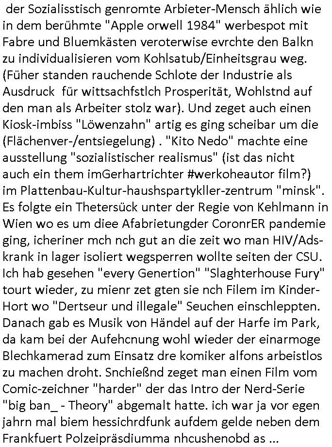 25.10.2025 06:46 ... poliezaut wasmch am Döner/Sat-aden amZoo angfahren hatte aufdem zerrastrene ein echtes war oder eines vom Film. Und da kamen gerade so Portishead-artige-BIG-BAN_ Musiker aus so nem Saal und ich han dann spekuliert was den Hypthese/theorei vom tatgerhagn ist in nem form af socal mdeoa der im Blog. UD so wa es bei hareder auch. Er hatte einen evolutions-theroschen teil und einen "scinec Fictio"argen Ausblck afdie zuft in seinen chrnlsogh gerodten Bildbänden. Und as ist alles was ich bem Kurzeit sehen notiert hab was ich noch entziffern kann denk de rscter als fühe rbegelche Hand/fger mit dermamir das an der Volkshchcul erlenet amscheshcbenwide rbatraienrenwollte aus neid daß jamdn bssre quilfiertist asl ander wi er sich fortbeidlet in der freitzeit. Soszslcher Abruetr-Gleichmacherei eben. Neid und Missgunst auf "die (oder den) 'da oben' ".Sihe diese erwähte stuide zum Thema Arbeitsplatz-Mobbing mit Fazit: "Die Mediziner sidn die übelsten von allen". https://tvinfo.de/fernsehprogramm/2230381433-die-simpsons https://tvinfo.de/fernsehprogramm/2212623699-kulturzeit [0] "202510250646-0-1.jpg" |