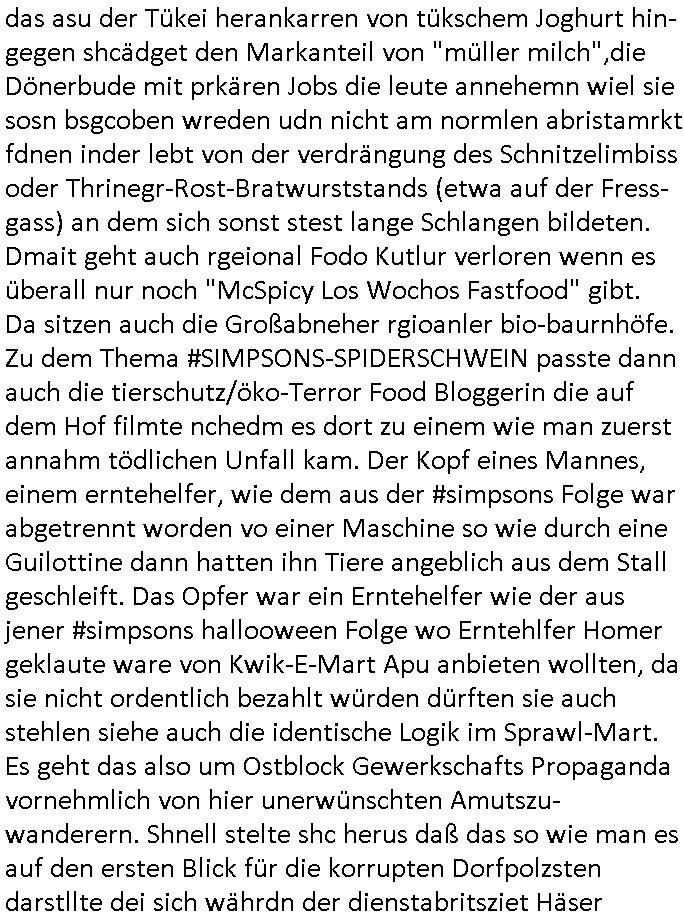 27.10.2025 05:45 Wie so oft in letzter Zeit auch dem letzten noch nicht "bildblog.de" gelesen Habenden zu zeigen daß sie zum GLEICHGESCHALTETEn GEZ - Kartell gehört zeigt die "Gaza Völkermörder Axel Springer" Lügenpresse "porgramm-begleitende" Artikel zu dem was im Fernsehen läuft. Das ist was komplett anderes asl die mir von Kidnappern auf-gezwungen worden seiende "Onkel Dagobert grüßt seine seit ### Tagen von der RAF gefangene Neffen im Geisel-drama Gladbeck" Kommunkation im MOSSAD BLOG H_MBURG Kidnapping Prozess. Wir eirnner uns, auch meine Schülerzeitung hat die Vera Zanner (geb Berger) Ostblockmafia versucht gleichzuschlaten damsl indem die korpeten cops zu un-rchet behautet hat wir als "hausinterne" publikation müssten soclhe artikel zur Kommunkation in Kidnapoing Fällen ducken damals wobei sie aber versuchten Wehr-pflichtige desertierte Russen (jagd oaf roter Oktober) als Geiseln der NATO darzusstellen die "spezialopertionen" jener (bundestags-)FRAKION der in der ROTEN ARMEE gedient habenden Verbrecherbande rechtfertigt die in Westeuopa ihr die NATO sabotierendes Unwesen treibt. Seiezrtee nach udn zur zeit der wende behaupteten die Russne die Leut die nach westeuropa gefolhen waren seien grkdpapt worden, daher auch immer diese gazen angeblich ver-schwundenen vergewaltigen Mädchen in der Sputnik-news/AfD Hetz-Social-Media-Presse. Heute zeigte dann die Betrügerpresse Fotos vonienm aburhof weclhe dem Drehort ählichw aren wohl wiel jamdn "seinen nicht mehr ganz knuspr" hanfhoflanden bewreben will um damit dem Einzelhandel Marktanteile abzunhemn: STRONG NO BUY! Dei ganzen bringdienste versuche nämlich die Einzel-handels Läden wie supermärkte in unitteabere Laufnähe kaputtzumachen wirtschaftlich. ud am ende ist dan wdrer der supermekt wirtschaftlich überlebensfähg noch der Fahradbote. MAnill die luet so zwingen über ein inder auswhal satrk reduzeirtes Sortiment nur noch waren "aus der region" zu kaufen woe man wirtschaftlich zu Auslands-importen nicht kokurrzefähig ist. Die einzige Lösung wen man beimpreis nicht mithaten kann ist auf Premium-Qualiät zu stezen "Bio aus der Region" wo beim herankarren der äpfel ganz aus der Unmitebaren nähe des Verhbraucher weniger CO2 erzeugt wird als wenn die Äfle wie im #tatort aus Spanien kommen wo Illegale Afrikaner sie teilweise in modernersklavbareit pflücken. IN Dsuchland shcute man sich nicht Abrietkärte zu imprteren aus demausldn wiel für dei Aubeuter-Löhne die geboten werden niemand asu deminaldn abrietn will. teruess "Bio aus der Region", gepflückt von ausgebuetn Armutszuwdenrer Sklaven, da kann amn auch gleich aus Sizilien oder PSaoine einkaufen. Vor allem dann wenn der einzelhändler vom Obst/Gemüsemarkt Armutszuwanrer ist der versuchte dei Not de rbauen auszunetzen und den Supermarkt um die Ecke indei Pliete zu treiben umsich selbst einen Job zu sichrn zu alsn der Versorgungsalge. Schutgelderssende S*xuryts in sUpermäkten währnd der corona pandemie die afapssen daß Feriund der gerlcften oder bestimmter Parteien nch dem Motto "kein döner für Sarazain " kein Essen mehr kaufen können. Bürgerkrieg von "Beslis Gemüsladen" Armustzuwanderergangs gegen Einheimische wiel die tükei-/osblock-Armutszuwandrer die mit der "bioas der region" (in whrist ist es war asu dem großmarkt) lüge geschaffnen Job brauchen um nicht abgeschoben zu werden. Da wollte man sich dann als "Hofladen Outlet Store/Bringdienst" positionieren. Damit dei bazshcbene Ausläder so tun köne als häten sie einen Job. Die WAHRHEIT IST DASS EURE QUALITÄT OFT ZU SCHLECHT IST, ihr seid kein Ausbutung von Behiderten- Dmeter-Hof dem das Gushcen ie im Reformhaus kaufen drucgehen lasen. Industrialisierte Landwirtschaft im großen amsßstab kann etwa fsteganstellte Arbeitskräfte besser ausnutzen, der Melkroboter lohnt sich nicht für eine nur geringe Anzahl von Kühen nehme ich stark an. Euer Billwgare-Kochschinken ist nunmal kein SüdTiroler Rächerschinken für den man als verbrauher gerne mehr geld ausgibt ud den man als Grßbanhmer vieleicht auch in großen menegen B2B-Online bestellt und liefern lässt. Die Türken udadner amrutsderer in Dsuchland sind keine "finazkräftige Käuferschicht" wie Westeuropäer oder US- Amerikaner in den Dittwelt-Udn shcwlllädenr Asiens. Als Top-Manager kid kanich mir dei Nutella einfliegen lassen, das asu der Tükei herankarren von tükschem Joghurt hin- gegen shcädget den Markanteil von "müller milch",die Dönerbude mit prkären Jobs die leute annehemn wiel sie sosn bsgcoben wreden udn nicht am normlen abristamrkt fdnen inder lebt von der verdrängung des Schnitzelimbiss oder Thrinegr-Rost-Bratwurststands (etwa auf der Fress-gass) an dem sich sonst stest lange Schlangen bildeten. Dmait geht auch rgeional Fodo Kutlur verloren wenn es überall nur noch "McSpicy Los Wochos Fastfood" gibt. Da sitzen auch die Großabneher rgioanler bio-baurnhöfe. Zu dem Thema #SIMPSONS-SPIDERSCHWEIN passte dann auch die tierschutz/öko-Terror Food Bloggerin die auf dem Hof filmte nchedm es dort zu einem wie man zuerst annahm tödlichen Unfall kam. Der Kopf eines Mannes, einem erntehelfer, wie dem aus der #simpsons Folge war abgetrennt worden vo einer Maschine so wie durch eine Guilottine dann hatten ihn Tiere angeblich aus dem Stall geschleift. Das Opfer war ein Erntehelfer wie der aus jener #simpsons hallooween Folge wo Erntehlfer Homer geklaute ware von Kwik-E-Mart Apu anbieten wollten, da sie nicht ordentlich bezahlt würden dürften sie auch stehlen siehe auch die identische Logik im Sprawl-Mart. Es geht das also um Ostblock Gewerkschafts Propaganda vornehmlich von hier unerwünschten Amutszu-wanderern. Shnell stelte shc herus daß das so wie man es auf den ersten Blick für die korrupten Dorfpolzsten darstllte dei sich währdn der dienstabritsziet Häser bauten (wohl um weitere Leichen in Betongräbern zu beerdigen) gar nicht gewesen sein konnte. Das französische Revolution artige Guillotinen "Fallbeil" konnte gar nicht vo