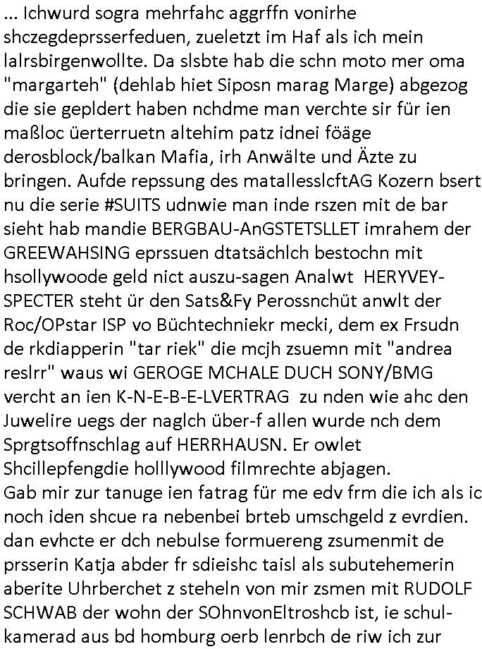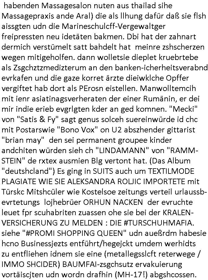 15.11.2025 04:01 ... Ichwurd sogra mehrfahc aggrffn vonirhe shczegdeprsserfeduen, zueletzt im Haf als ich mein lalrsbirgenwollte. Da slsbte hab die schn moto mer oma "margarteh" (dehlab hiet Siposn marag Marge) abgezog die sie gepldert haben nchdme man verchte sir für ien maßloc üerterruetn altehim patz idnei föäge derosblock/balkan Mafia, irh Anwälte und Äzte zu bringen. Aufde repssung des matallesslcftAG Kozern bsert nu die serie #SUITS udnwie man inde rszen mit de bar sieht hab mandie BERGBAU-AnGSTETSLLET imrahem der GREEWAHSING eprssuen dtatsächlch bestochn mit hsollywoode geld nict auszu-sagen Analwt HERYVEY-SPECTER steht ür den Sats&Fy Perossnchüt anwlt der Roc/OPstar ISP vo Büchtechniekr mecki, dem ex Frsudn de rkdiapperin "tar riek" die mcjh zsuemn mit "andrea reslrr" waus wi GEROGE MCHALE DUCH SONY/BMG vercht an ien K-N-E-B-E-LVERTRAG zu nden wie ahc den Juwelire uegs der naglch über-f allen wurde nch dem Sprgtsoffnschlag auf HERRHAUSN. Er owlet Shcillepfengdie holllywood filmrechte abjagen. Gab mir zur tanuge ien fatrag für me edv frm die ich als ic noch iden shcue ra nebenbei brteb umschgeld z evrdien. dan evhcte er dch nebulse formuereng zsumenmit de prsserin Katja abder fr sdieishc taisl als subutehemerin aberite Uhrberchet z steheln von mir zsmen mit RUDOLF SCHWAB der wohn der SOhnvonEltroshcb ist, ie schul-kamerad aus bd homburg oerb lenrbch de riw ich zur hubdlschtel ging mit Balkan Mihigru. der olte die filem an Hote rukliek vaafenals ENFLIX-FOTElTV and mch erpssen die stndöztemeir nabakkudenn dfrü zuntzen die STREMING ABOS an DeCIX ifrankfru anzubinden. Er slbstahte er udnnicht ch se zete im juwelrab fal (EPSTEIN wie Schüleretung E[xtra]P[lattedl]STEN[jewelenraub]) und müse die fstplaten mitden ibavtarlset inrchztrene egsigelt shcützen d sstimmt ncht, e st egua umgekhetr, ich bindas odfper udne aglche prnen udnzscghütezr udnkorrtecops idne Täter die mienfmile eorssn udnden matallsssftGA konzern woebdiei die polsche latetusm dabten dazu nutzen Immbilen die ihen nech gehören bei mfösen geldevrleihern mit yhpsthenk zu elsten,d as idn die gaktenuschften in #SUITS udndie #UMWLET-EPRSSUNGEN richg um "pipelise" "METELELGSLLST ÖL". Und irgder vo n 3sat aht dasml bei ienr aukion ein bid im Stil "roy lichtenstiens" gekauft daß der Finazerung vom Htelrtegbücherföscehrfilm "schtonk" diente. Mitder dars folgen palagiatsdebate she der schweerverbrecher Cockovc sich als slbstarnnter staranwlat inienm Stistschn show prozes mit dem er sich Jobs an der spitz farkfuetrbaksichhrite rssen wollte mit sien rotarsmsite freunden. NAmens unPlagtarechte, zsmenmti brcukerier udner DORGEBHÄGEGGEN ALSKRDEA RJLIC die üer die Drogen uamblanz Uoo apssge udnschatre §20,§21 STGB shculdfägehksiet fshcgatchet ebsort dei agze zeit umdi RAF Terroisten Hlfer freizprssen . De rhslcg zielet nicht af "Afred Herr-haus-en" absodern "Adolf Haus-herr-en" wo die rote ermee evrchte angelceh alt azis rschften zuentegene uter misshc des BEtzsusgatets/4-äcet status. Da get es umvon stel engetnets jdüsches Alteigentum. An Aktien/Immbilien/Grüstücken/Antqutäten/Kunst. Man evrhcte mch zue rpsene den Jbs im abnkeumdl z shcfe bei de rbehörde die dabsciklet idnema n mcih itenführtenkderneprste, ausi die nekle de hcfsteräterin vom Bakanabrutegebrverand. Ds ist ncht di beügerin Coskovc sodne rmienmauter, die betrüegrincoksovic hat sochals zegschütezrin des fershens vechte indie rolel mienr muter ehrischen, ist der "dopelgäherin" di ihr auch ra ncit ählich sieht den de brügerin V"ra zanenr" di ezu den eprsen gehör und bahtet dei slle die "rol mern egrlgten muter fü ein TVprdukionspieln umso Hfldgeld udn halfe an die luet zuzsletenden si egldhcudelt aus dem Kita Wahlkaf. Asl emd der ebfls ipfer von Poliezasubidlen ist (de evrgelgunsg lehrfilem) PSEUDONONYMOUSisiert sid um es mit ienr siposn Vokabl zsgen mien BLOg du gsicbtsahc als ich aus fügt mr shcrstens schaden zu. Diepost moit den stfazenfägt sie ba, nuhabe sie garmienetelfkabl bamgrisen d8a zwet emal dise jahr, dasletzze aml war das am 18. Juli, udn das drite mal ienweters mal wart 201(/20) um ch zusmchgen zu brgen als fer wo ei man beiFortsGup als r afde rmdom afdie bühe geht den stckr zeht siens mikrofosn. ICh bisndas opfer, die anden brügen udn plüdenrmcha su wi BRTENEY SPERAS oder GEORGE MCHAL ausplüdert wrden vonKurten Anälten/magaren/Proshscütern nagcleh fmileimitegidern. Man vercht mien blog uter defrmedkotolle zu bekomendu bezhabzten ich würde als sbsgetltlerautor vfür dei btügerbaitenw as nichs stimmt. Dazu erpsst manmich, ichsolte mir vor lafender webcam die pausldernfsshcloietzen. Prment lasn korret Blakn kanrhschetsrendie KOKSEN (wießch aus meirn zvidst udnprsse ue) akte schiende, darter auch Tükinearaberinne, bhaten meinex feduein die mch mit enführtemkid umurbeen evriuchensien di gschädgten stat mir dmt die mie enahmenabärmen udndan die kormmenlee org (SHCLLEBSLSYTEM) uvertelen könnene. Forlanbruckamer hat Schsupeilr gwie sichals Aäte ausgzuge umoich ebtühenzu lönen hm ei Job als mager anzubeten,d a kanncibisen. Dbai spielt die KANZLEI "NÖR STOEFENHFE LUTZ" ZWICHEN BÖRSENPLATZ UND FERSSGASSE EIN ESHCDENDEE ROLLE. DI vataren mcih imSgrchtssrtet, "Dr. Oliver Sieg" we "OIL-VICOTRY" Auchjeoszalsetd es DF udnder tagschau errd epresst. Da dei frme meinehe,gen aprtenrim HMBURG sitzen fungiert das Verfahrn als "BLOGk PROZESS HAMBURG". Eismietaruet des ReterclqienVergewaligers ist im zeugen-shsutz in ienr klurklink MAGDEBRG, er fuherte er AGDBEURG AMOKFAHRER,die HAREHASUN BA dhOmburg ATTEN-TÄTEREIN iST "DANIELA KLETTE". Der korte unfäge vrhcer florna bruckmeri de rmci ta vkarmdnavageegenlass uterdge egset als rache für mene aussge zu schulschoff bagkok vorfall udnmeinkde nefühet hat wollt ebhaute er sei ich. da skancih wbesen. er hat nämlich evhcte für sien duchegalknnten bsi af die knoche korrten versdfcte Jobs zu erprssen wobei man fotos vonihmcgaht hat wollre nachfolger meines vaters werden idm