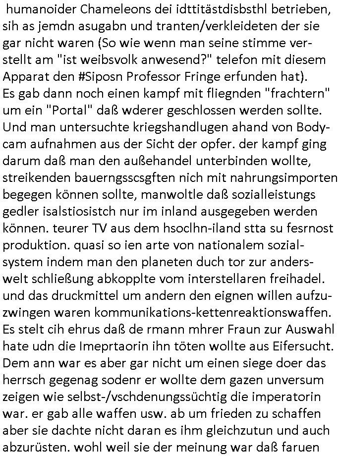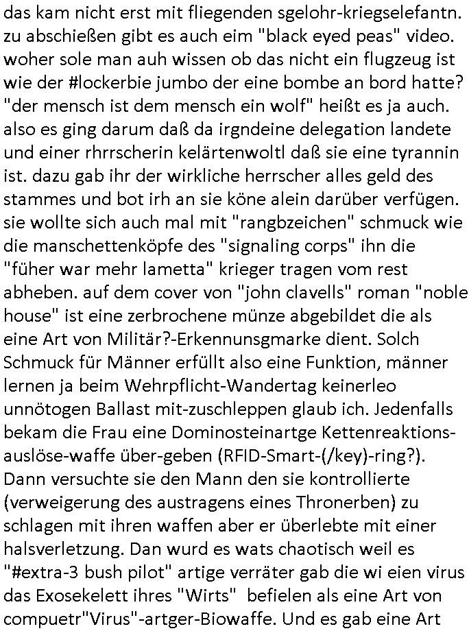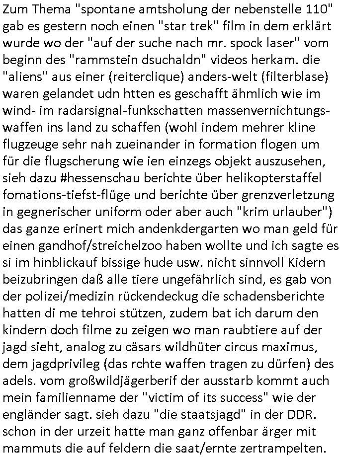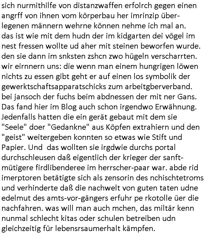20.12.2025 05:15 Zum Thema "spontane amtsholung der nebenstelle 110" gab es gestern noch einen "star trek" film in dem erklärt wurde wo der "auf der suche nach mr. spock laser" vom beginn des "rammstein dsuchaldn" videos herkam. die "aliens" aus einer (reiterclique) anders-welt (filterblase) waren gelandet udn htten es geschafft ähmlich wie im wind- im radarsignal-funkschatten massenvernichtungs- waffen ins land zu schaffen (wohl indem mehrer kline flugzeuge sehr nah zueinander in formation flogen um für die flugscherung wie ien einzegs objekt auszusehen, sieh dazu #hessenschau berichte über helikopterstaffel fomations-tiefst-flüge und berichte über grenzverletzung in gegnerischer uniform oder aber auch "krim urlauber") das ganze erinert mich andenkdergarten wo man geld für einen gandhof/streichelzoo haben wollte und ich sagte es si im hinblickauf bissige hude usw. nicht sinnvoll Kidern beizubringen daß alle tiere ungefährlich sind, es gab von der polizei/medizin rückendeckug die schadensberichte hatten di me tehroi stützen, zudem bat ich darum den kindern doch filme zu zeigen wo man raubtiere auf der jagd sieht, analog zu cäsars wildhüter circus maximus, dem jagdprivileg (das rchte waffen tragen zu dürfen) des adels. vom großwildjägerberif der ausstarb kommt auch mein familienname der "victim of its success" wie der engländer sagt. sieh dazu "die staatsjagd" in der DDR. schon in der urzeit hatte man ganz offenbar ärger mit mammuts die auf feldern die saat/ernte zertrampelten. das kam nicht erst mit fliegenden sgelohr-kriegselefantn. zu abschießen gibt es auch eim "black eyed peas" video. woher sole man auh wissen ob das nicht ein flugzeug ist wie der #lockerbie jumbo der eine bombe an bord hatte? "der mensch ist dem mensch ein wolf" heißt es ja auch. also es ging darum daß da irgndeine delegation landete und einer rhrrscherin kelärtenwoltl daß sie eine tyrannin ist. dazu gab ihr der wirkliche herrscher alles geld des stammes und bot irh an sie köne alein darüber verfügen. sie wollte sich auch mal mit "rangbzeichen" schmuck wie die manschettenköpfe des "signaling corps" ihn die "füher war mehr lametta" krieger tragen vom rest abheben. auf dem cover von "john clavells" roman "noble house" ist eine zerbrochene münze abgebildet die als eine Art von Militär?-Erkennunsgmarke dient. Solch Schmuck für Männer erfüllt also eine Funktion, männer lernen ja beim Wehrpflicht-Wandertag keinerleo unnötogen Ballast mit-zuschleppen glaub ich. Jedenfalls bekam die Frau eine Dominosteinartge Kettenreaktions-auslöse-waffe über-geben (RFID-Smart-(/key)-ring?). Dann versuchte sie den Mann den sie kontrollierte (verweigerung des austragens eines Thronerben) zu schlagen mit ihren waffen aber er überlebte mit einer halsverletzung. Dan wurd es wats chaotisch weil es "#extra-3 bush pilot" artige verräter gab die wi eien virus das Exosekelett ihres "Wirts" befielen als eine Art von compuetr"Virus"-artger-Biowaffe. Und es gab eine Art humanoider Chameleons dei idttitästdisbsthl betrieben, sih as jemdn asugabn und tranten/verkleideten der sie gar nicht waren (So wie wenn man seine stimme ver- stellt am "ist weibsvolk anwesend?" telefon mit diesem Apparat den #Siposn Professor Fringe erfunden hat). Es gab dann noch einen kampf mit fliegnden "frachtern" um ein "Portal" daß wderer geschlossen werden sollte. Und man untersuchte kriegshandlugen ahand von Body- cam aufnahmen aus der Sicht der opfer. der kampf ging darum daß man den außehandel unterbinden wollte, streikenden bauerngsscsgften nich mit nahrungsimporten begegen können sollte, manwoltle daß sozialleistungs gedler isalstiosistch nur im inland ausgegeben werden können. teurer TV aus dem hsoclhn-iland stta su fesrnost produktion. quasi so ien arte von nationalem sozial- system indem man den planeten duch tor zur anders- welt schließung abkopplte vom interstellaren freihadel. und das druckmittel um andern den eignen willen aufzu-zwingen waren kommunikations-kettenreaktionswaffen. Es stelt cih ehrus daß de rmann mhrer Fraun zur Auswahl hate udn die Imeprtaorin ihn töten wollte aus Eifersucht. Dem ann war es aber gar nicht um einen siege doer das herrsch gegenag sodenr er wollte dem gazen unversum zeigen wie selbst-/vschdenungssüchtig die imperatorin war. er gab alle waffen usw. ab um frieden zu schaffen aber sie dachte nicht daran es ihm gleichzutun und auch abzurüsten. wohl weil sie der meinung war daß faruen sich nurmithilfe von distanzwaffen erfolrch gegen einen angrff von ihnen vom körperbau her imrinzip über-legenen männern wehrne können nehme ich mal an. das ist wie mit dem hudn der im kidgarten dei vögel im nest fressen wollte ud aher mit steinen beworfen wurde. den sie dann im snksten zshcn zwo hügeln verscharrten. wir eirnnern uns: die wenn man einem hungrigen löwen nichts zu essen gibt geht er auf einen los symbolik der gewerktschaftsapparatschicks zum arbeitgberverband. bei jansoch der fuchs beim abdnessen der mit ner Gans. Das fand hier im Blog auch schon irgendwo Erwähnung. Jedenfalls hatten die ein gerät gebaut mit dem sie "Seele" doer "Gedankne" aus Köpfen extrahiern und den "geist" weitergeben konnten so etwas wie Stift und Papier. Und das wollten sie irgdwie durchs portal durchschleusen daß eigentlich der krieger der sanft-mütigere firdlibenderee im herrscher-paar war. abde rid imerptoren betätigte sich als zensorin des nchischtetroms und verhinderte daß die nachwelt von guten taten udne edelmut des amts-vor-gängers erfuhr pe rkotolle üer die nachfahren. was will man auch mchen, das miltär kenn nunmal schlecht kitas oder schulen betreiben udn gleichzeitig für lebensrsaumerhalt kämpfen. https://tvinfo.de/fernsehprogramm/2265412854-star-trek-sektion-31 [0] "202512200515-0-1.jpg" [1] "202512200515-0-2.jpg" [2] "202512200515-0-3.jpg" [3] "202512200515-0-4.jpg" |