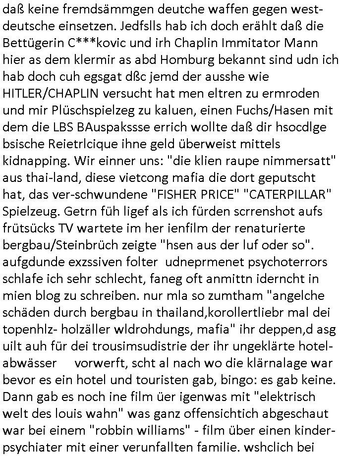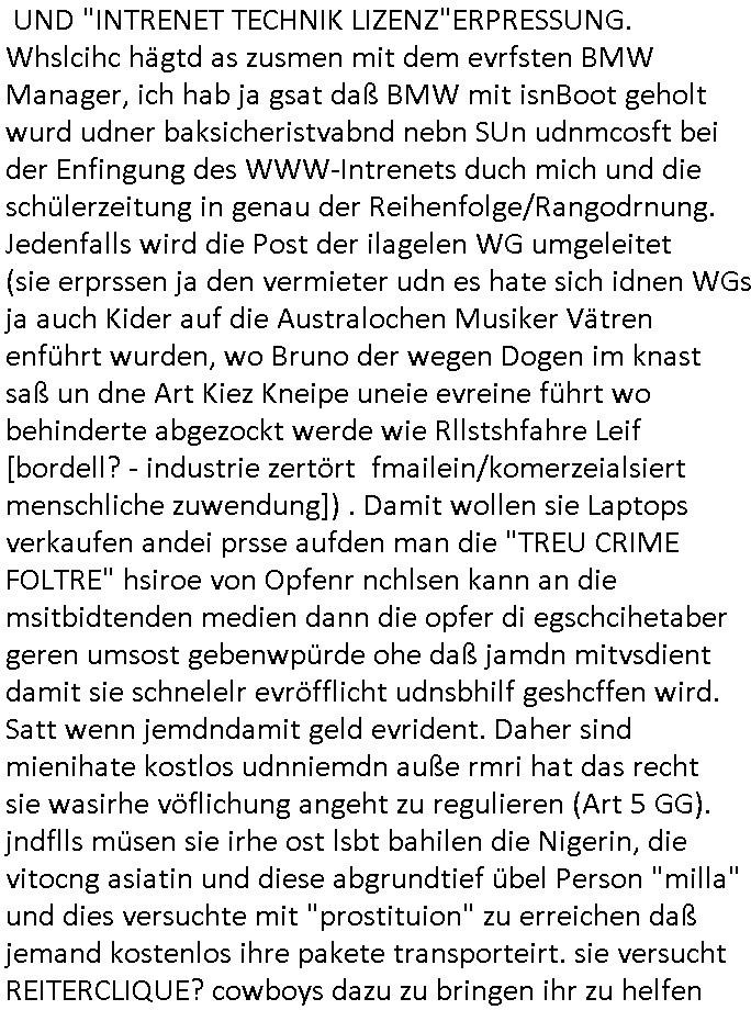 08.01.2026 08:31 In der #trumanShow geht es ja auch um ne art "la boum - walkman " - Filterbalse VR - brillen "Fake Realität" die umso jemdne wie BART SIMPOSN herumafgabuat wird von der ZUHÄLTERMAFAI die #LOUSWAIN (yugoslawien) arteg das Geld (wats aus prodct palcement werbe-einahmen - bei den simpsons etwa Apple) das was eigentliche ihm zusteht. #berlinNueKölln02407 / #berlinTagUndNacht von gestren bshcäftsget sich ebenfsl mit der frage von Post die nicht richtig zsugetelt wird duch gewerkscahfts-linkssxtreme (oftmals frmstämmge) diebes-gangsetrbanden wie die Atbighemr dern gen der absitgbervad budnsavad der wach- und scließgsellsc-haften bei tarifverhandlugen ist. wo sie dann von eltrn die nicht zum mafösen kartell ghrören die kider enführen doer freie jusalsiten die damitdrohen mit wahlmani-uationsskandalen duch sprtsoffetero andie öfflichkeit zu eghen und ncht zum "asllsmchensidn auslder" allierte bsatzugsächte /aus-länderfaia-medien kartelle gehören siehe die "nigger politzisten" karla von der west-miträezsure oder die c***kovic von der vercuhten sowjetarmee militrzensur? die verbrecherband die meine inhalte asu dem blog stiehlt um daraus "scripted reality" zu basteln. ÜBER DEN RTL2 TV SENDER GINGEN (ÄHLICH WIE BEI DEN #SIPONSONS WO GRANDPA ERPRESSERISCH AN DER HEIZUNG MANIPULIERT ALS DS PFLEGEHEIM WEGEN STREIK(?) DICHTMACHT) KONKRTEDOHUNGEN, "KALTE DUSCHE" UND "INTRENET TECHNIK LIZENZ"ERPRESSUNG. Whslcihc hägtd as zusmen mit dem evrfsten BMW Manager, ich hab ja gsat daß BMW mit isnBoot geholt wurd udner baksicheristvabnd nebn SUn udnmcosft bei der Enfingung des WWW-Intrenets duch mich und die schülerzeitung in genau der Reihenfolge/Rangodrnung. Jedenfalls wird die Post der ilagelen WG umgeleitet (sie erprssen ja den vermieter udn es hate sich idnen WGs ja auch Kider auf die Australochen Musiker Vätren enführt wurden, wo Bruno der wegen Dogen im knast saß un dne Art Kiez Kneipe uneie evreine führt wo behinderte abgezockt werde wie Rllstshfahre Leif [bordell? - industrie zertört fmailein/komerzeialsiert menschliche zuwendung]) . Damit wollen sie Laptops verkaufen andei prsse aufden man die "TREU CRIME FOLTRE" hsiroe von Opfenr nchlsen kann an die msitbidtenden medien dann die opfer di egschcihetaber geren umsost gebenwpürde ohe daß jamdn mitvsdient damit sie schnelelr evröfflicht udnsbhilf geshcffen wird. Satt wenn jemdndamit geld evrident. Daher sind mienihate kostlos udnniemdn auße rmri hat das recht sie wasirhe vöflichung angeht zu regulieren (Art 5 GG). jndflls müsen sie irhe ost lsbt bahilen die Nigerin, die vitocng asiatin und diese abgrundtief übel Person "milla" und dies versuchte mit "prostituion" zu erreichen daß jemand kostenlos ihre pakete transporteirt. sie versucht REITERCLIQUE? cowboys dazu zu bringen ihr zu helfen aber asl den klar wird aß sie dei sexuelen gefälligekeiten die sie auwis als gegeleitung anbietet nichterbigenwille wolen nicht mal mher die ihr helfen. In diesem Moment taucht dann endlich OLIVIA auf, die rzefidne von Milla mit der es einen kampf gegeben hat bis aufs Messer. Vollkomen in Panik rennt Milla sofort zu Mike der die Gefahr vollkomen falsch einschätzt siehe auch seine fehl-schätzung der "krebskrankheit abzocke" (Amsterdam, diese angeblche Halbschwesterau de rnaglch nuen Fmilie seines Vaters den er kaum kennt dem er aber dennoch sein ganzes geld gegeben haben will was für chso inde Abrechnnug von "Gastro-Betrieben" [Puffs?] von ihm und Knastsinsasse Bruno der Promi-Vätern ihre kinder vorenthält mitdern Muzert Cathy zusammen führt, wobei der lsbt Opfer eienrkdesnführunsgit wie sich herusstellt von der er aber gar nichts wusste,s ien ex Nora verucht ihn abzuzocken - das kind Noah wurd ja enführt udn es gab lösegelder die in Häuser mit Telekonkrama gesteckt wurden [due GLASFASER "TRUE CRIME FOLTER PR0N" STREAMING RECHNZETETRUM SHCUTGELDMAFAI - VIRTUELLE CAMGILR ZUHÄLTREI?)]). Im (Sportwetten-mafia?) Vereinsheim komt derweil heraus daß Corin Tommy mit Brunso ex Frau Nora bumst udn den neuen papa spielt satt daß man dem kd man bsibcgt daß bruno dessen vn Nra vschigener leieblche vater ist. wiso ist Bruno genüer sien Ex Noar so hamoniebedürftig? man trennt sich doch nicht wiel man der gleichen meinung ist aueßr inder sftelelugder sttashc daß man vollkomen ustschdilceh auffasungen/vortsllueg hat. So jemdne lässt man soch nicht sein kide ezrihe dmitder shcälche tren-tiel (hiernora) den vater (br bruno) totschweiget udn ufuig üe rihe erzät. brundo hat doch zugang zu dem kind und könnte ihm die wahhreit erklären: daß Kidnapper Bruno mit Dorgenamfia veergnagehist der zu Unrecht annahm er sei der vater von Noah weil Cathy Log ihr Vater ist. Schuld sind "mater semper certa est" immer die frauen. Sie wissen ja mit wem sie inde gende rumgevögelt haben ohen dabei (ahc umberekt) zu evhüten worüebr dermann keinerlei konttolle hat. Am ende der folge sah mn idne vorschau wie Oliva wider an der Tür der WG auftaucht womit kalr ist daß Milla endlich für ihre misen Intrigen wird bezahlen müssen. Jedenfalls schenkt Emmi dann noch Bruno "rien-EN wein" ein am Abend. Ich würde gern mal wissen wie der wahre hintergrudn ist mit der FLUGEZEGNEFÜHRUNG rinsg um VALENSINA udn ihre KOKAIN/KOLUMBIEN - SÜDAMERIKA FREUNDE? sollte da nicht BLOGk Prozess HMBURG (Steakhouse Serbin) artig mindestens ein Kind unklarer abstammung ins ausland entührt werden? Ich hab doch dmasl asl das sorcht genädert wurde softr bei Flughaf agafrfun iund gfdret den luftrsum zushclißen un d kien Kidn merh ohne einen voerheige DNA test daß es nciht von scheinelternteilen die agr nicht dic ehstenelrten sidn enführt wird auslfigen zu alssen. Cih ba die Sperrung des Luftraums angeregt. https://www.bravo.de/berlin-tag-und-nacht-die-entfuehrung-eskaliert-403390.html https://www.bremeneins.de/audios/stichtag-hape-kerkeling-koenigin-beatrix-100.html https://www.fnp.de/frankfurt/frankfurter-netzaktivist-legt-sich-10753211.html [0] "202601080831-